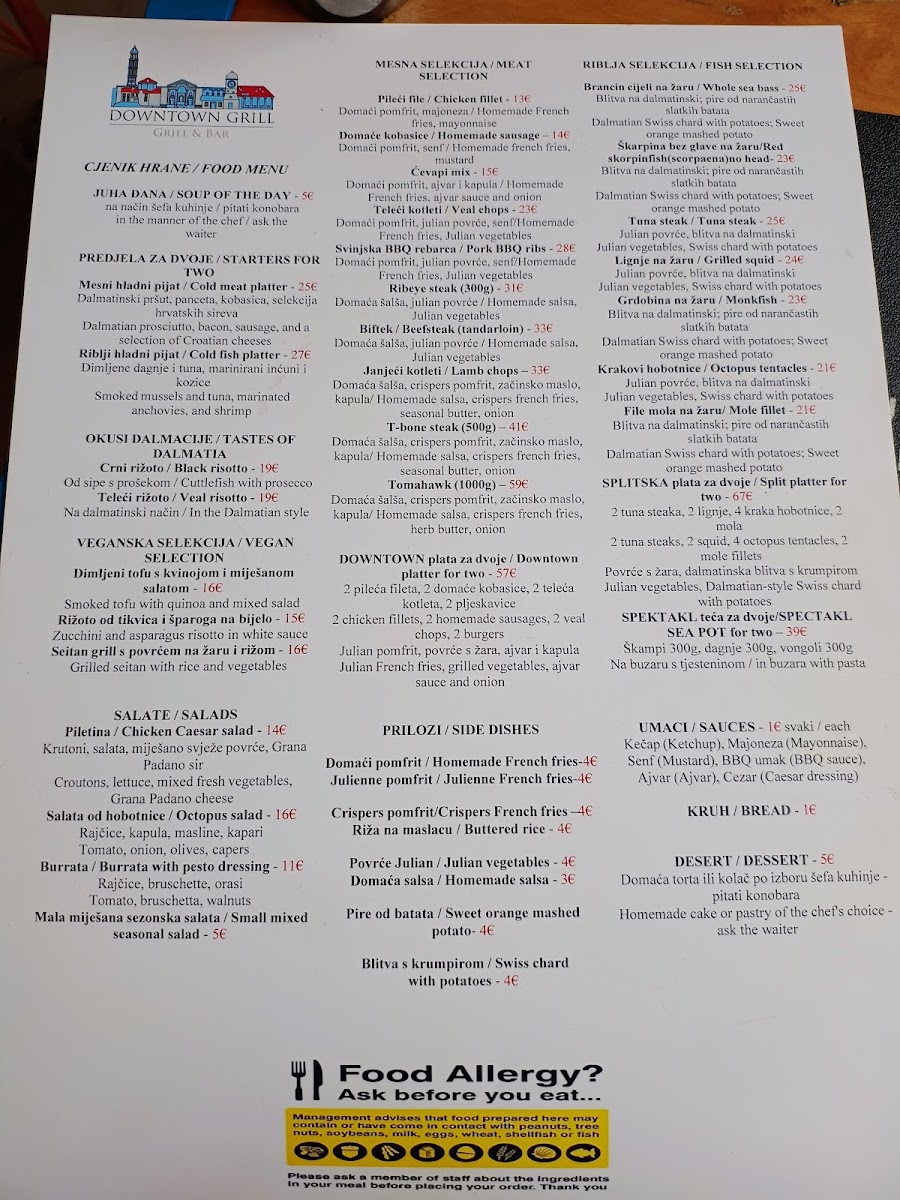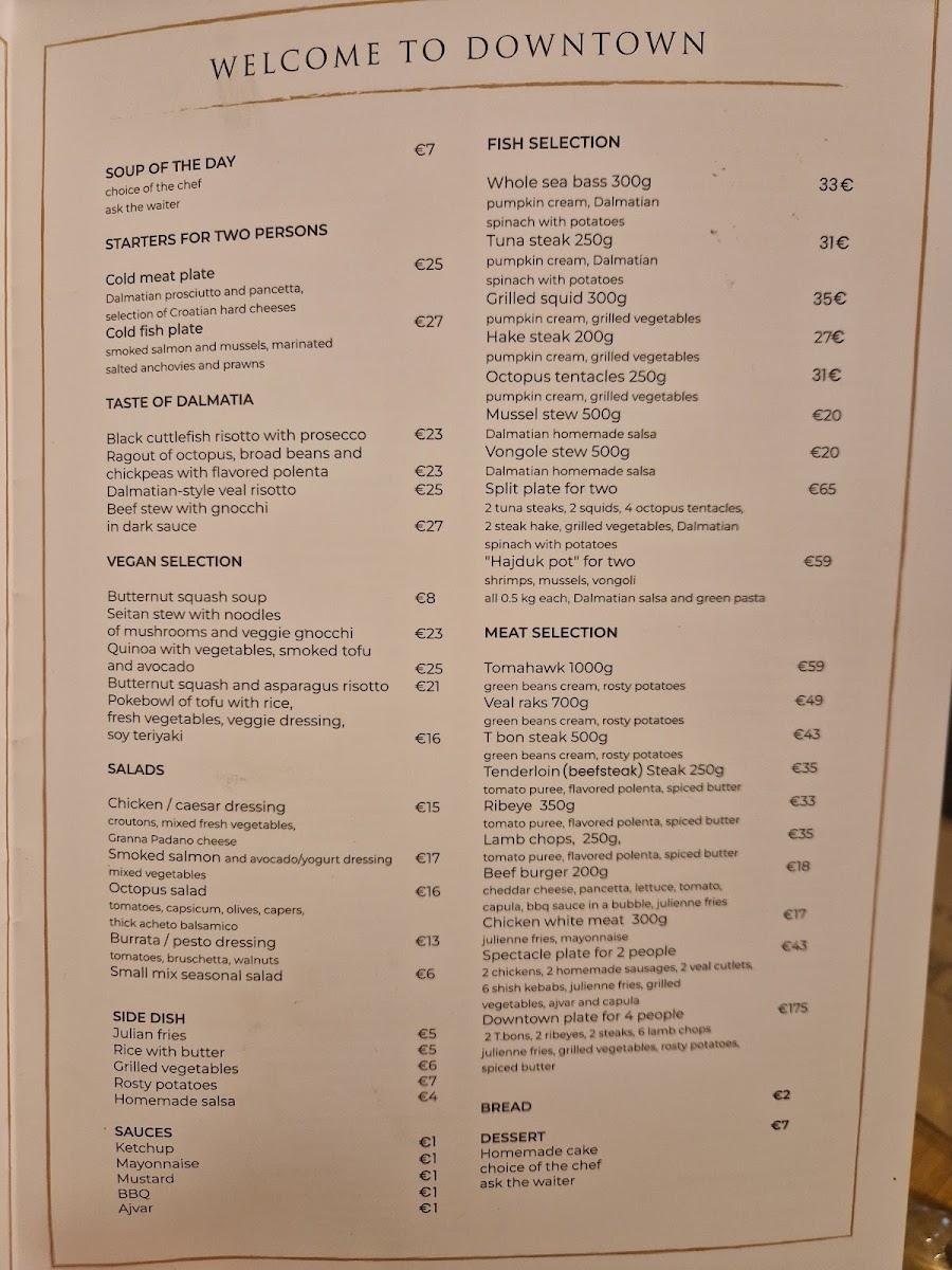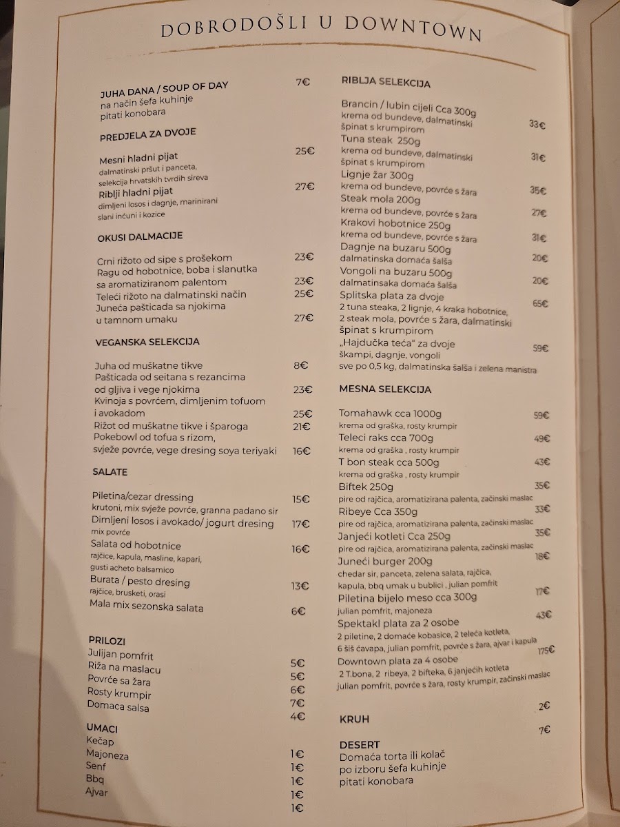 The menu at Downtown Grill Split Steak & Seafood offers a straightforward and satisfying selection that brings focus to quality ingredients and thoughtful preparation. It reflects a blend of traditional Croatian flavors and classic grill favorites, served in a setting that balances casual comfort with a touch of refined dining.