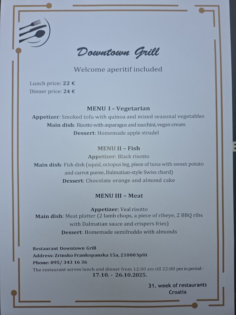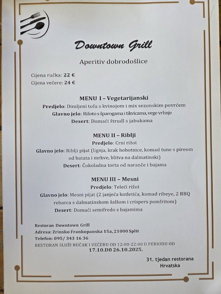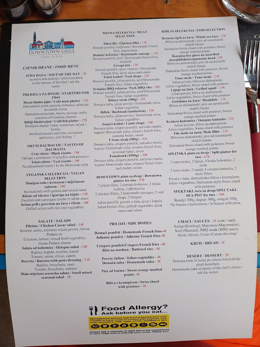 The menu at Downtown Grill Split Steak & Seafood offers a straightforward and satisfying selection that brings focus to quality ingredients and thoughtful preparation. It reflects a blend of traditional Croatian flavors and classic grill favorites, served in a setting that balances casual comfort with a touch of refined dining.